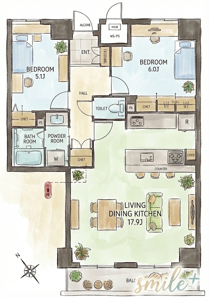 価格 3,090万円 間取り 3LDK 専有面積 79.1㎡ 築年 2000年10月 向き 南 所在階 6階 建物階数 地上13階 総戸数 48戸 交通 山陽本線「岡山」駅 徒歩17分 住所 岡山県岡山市北区厚生町2丁目1-1 -